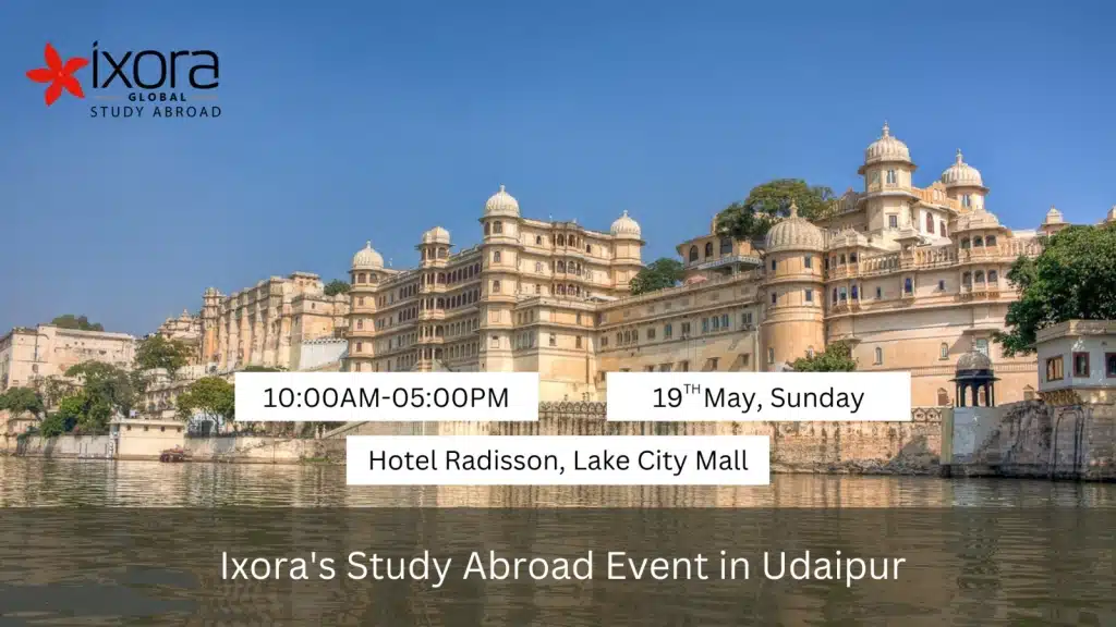 Join us at the Biggest Study Abroad Education Fair at Hotel Radisson, Lake City Mall, Udaipur on May 19th, from 10:00 AM to 5:00 PM. Discover a world of change and opportunity! Win exciting prizes as we streamline the complexities of international education for you. Ixora Global is your go-to guide, offering support in university shortlisting, visa procedures, scholarships & grants, accommodation assistance, and more. Don’t miss out! Register now www.ixorainternational.in